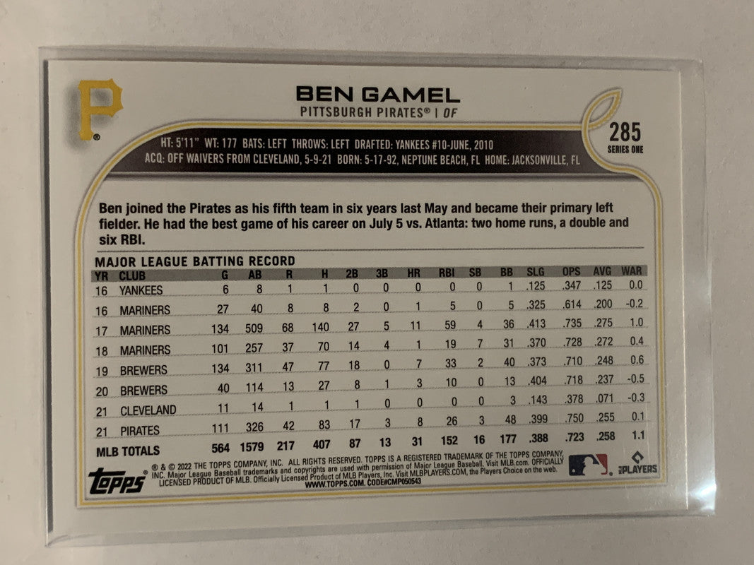 #285 Ben Gamel Pittsburgh Pirates 2022 Topps Series 1 Baseball Card MLB