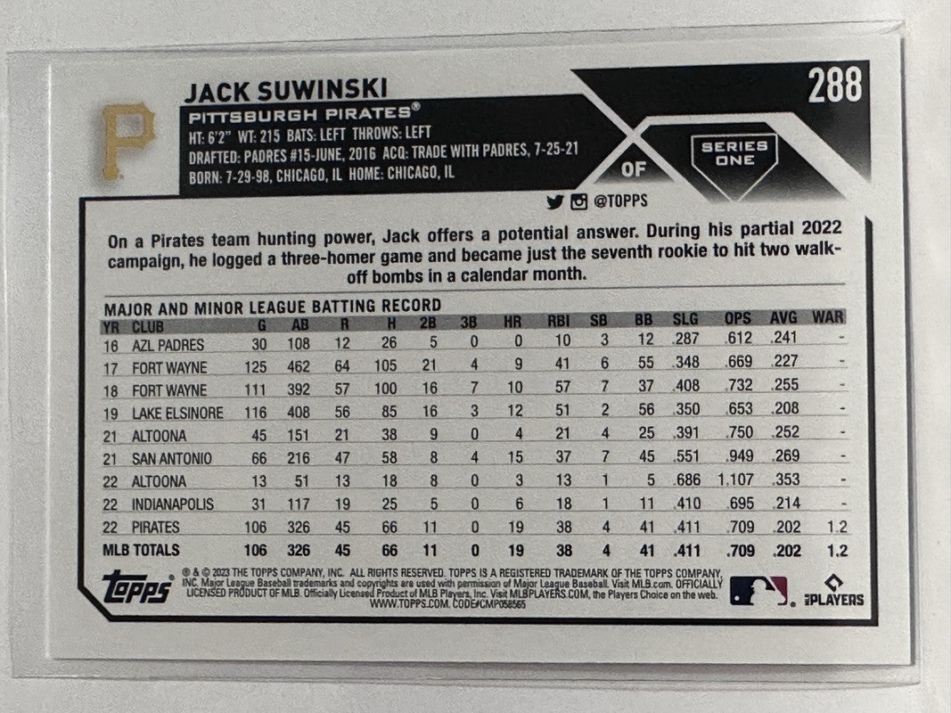 #288 Jack Suwinski Pittsburgh Pirates 2023 Topps Series One Baseball Card