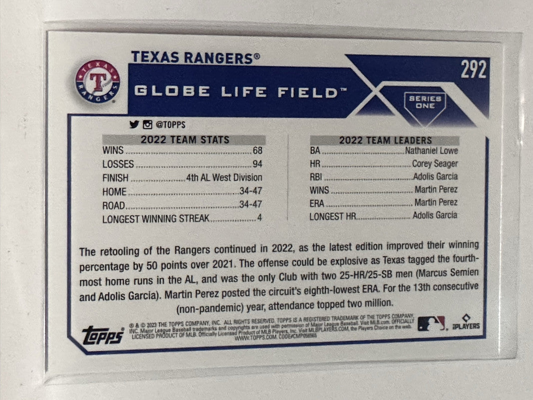 #292 Globe Life Field Texas Rangers 2023 Topps Series One Baseball Card