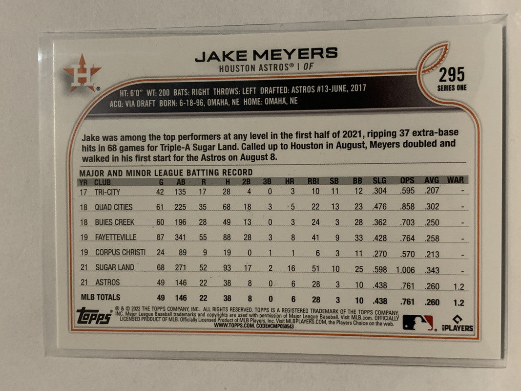#295 Jake Meyers Rookie Houston Astros 2022 Topps Series 1 Baseball Card MLB