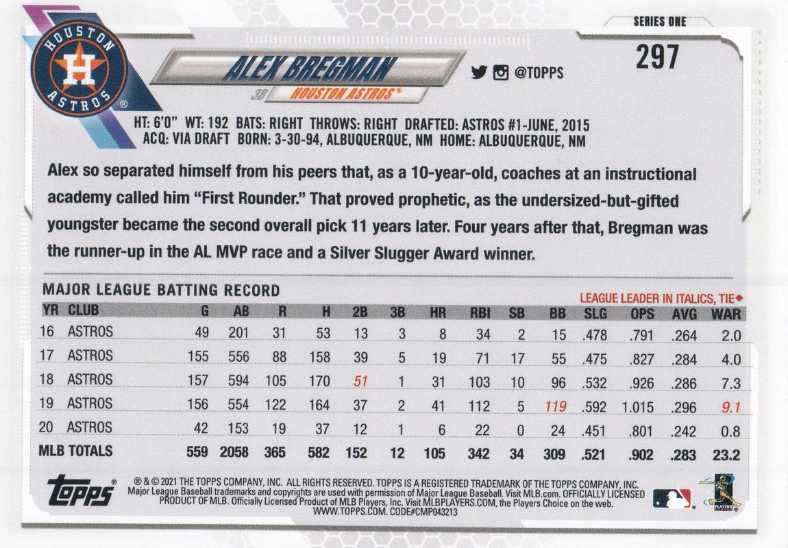 #297 Alex Bregman Houston Astros 2021 Topps Series 1 Baseball Card