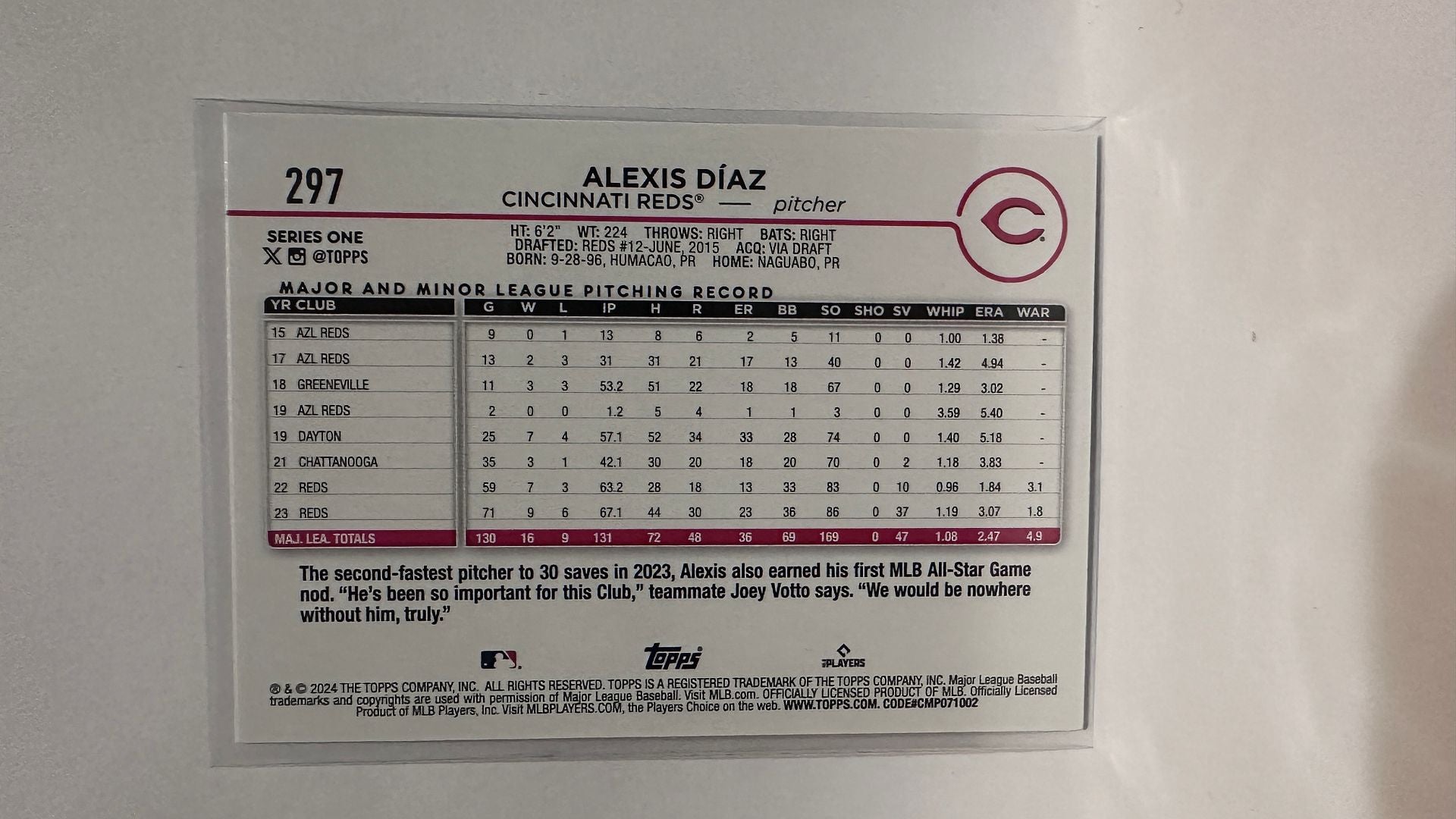 #297 Alexis Diaz Cincinnati Reds 2024 Topps Baseball Card