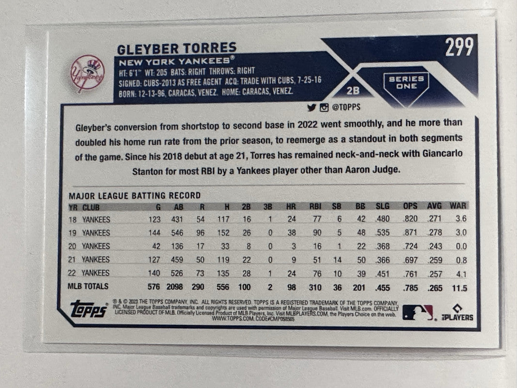 #299 Gleyber Torres New York Yankees 2023 Topps Series One Baseball Card