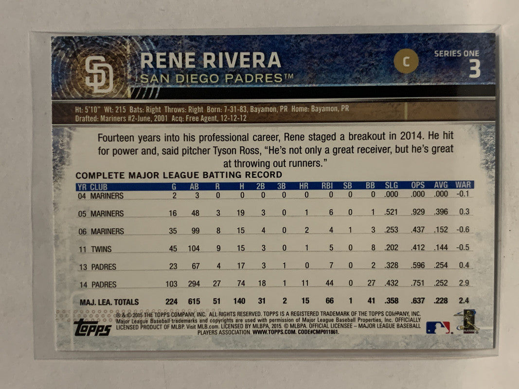 # 3 Rene Rivera San Diego Padres 2015 Topps Series One Baseball Card