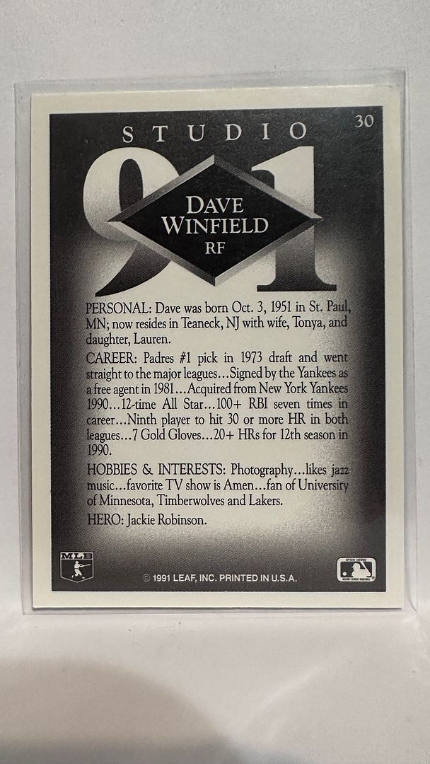 #30 Dave Winfield Los Angeles Angels 1991 Studio Baseball Card