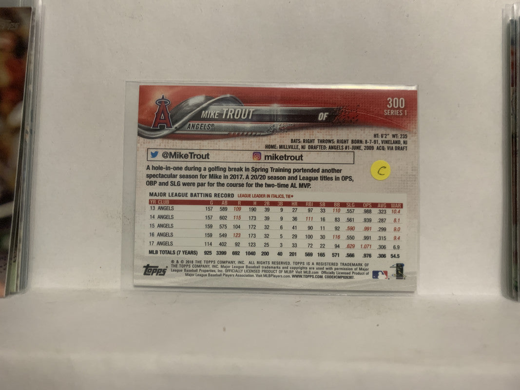 #300 Mike Trout Los Angeles Angels 2018 Topps Series 1 Baseball Card NU