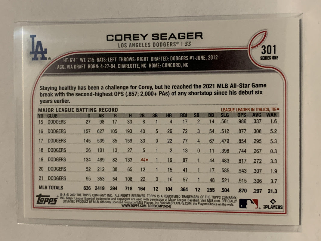 #301 Corey Seager Los Angeles Dodgers 2022 Topps Series 1 Baseball Card MLB