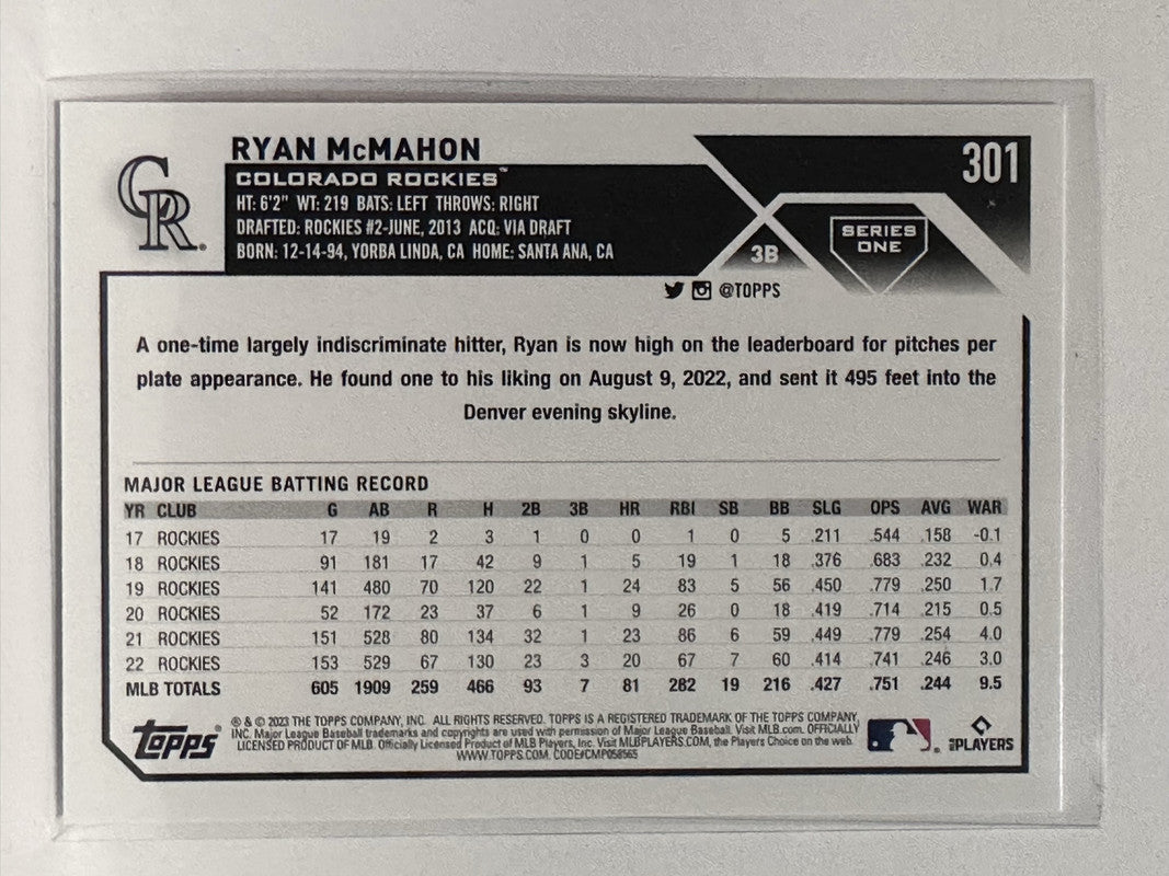 #301 Ryan Mcmahon Colorado Rockies 2023 Topps Series One Baseball Card