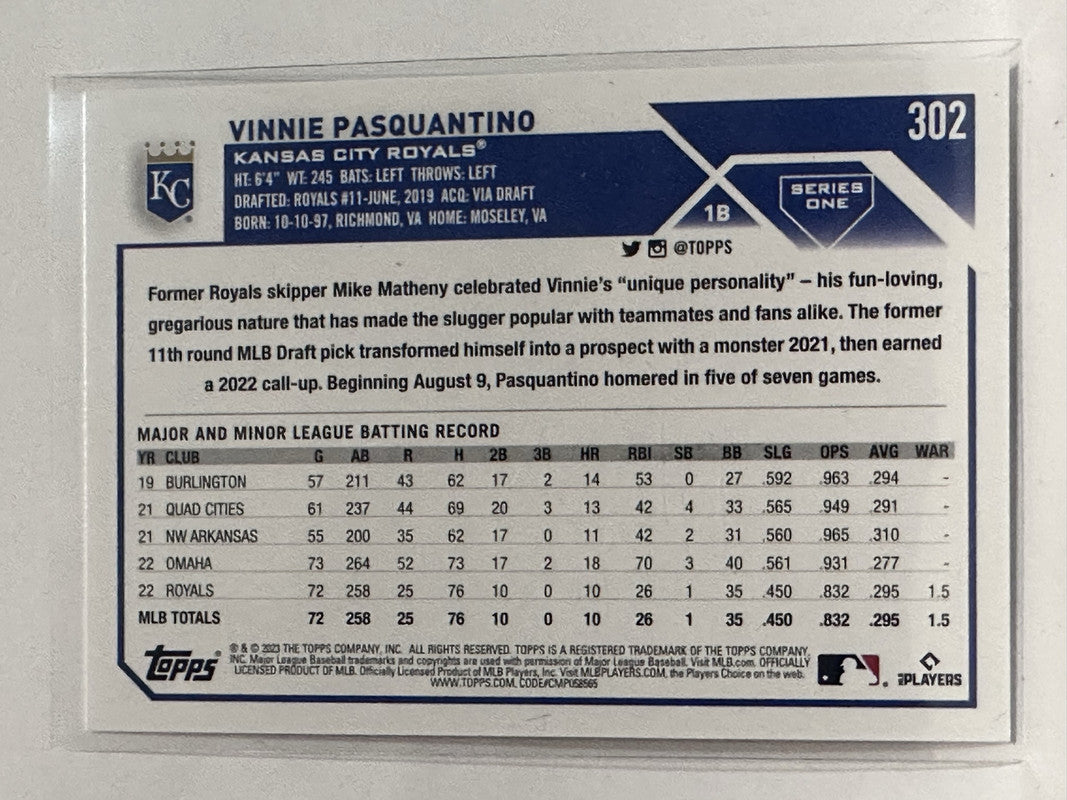 #302 Vinnie Pasquantino Rookie Kansas City Royals 2023 Topps Series One Baseball Card