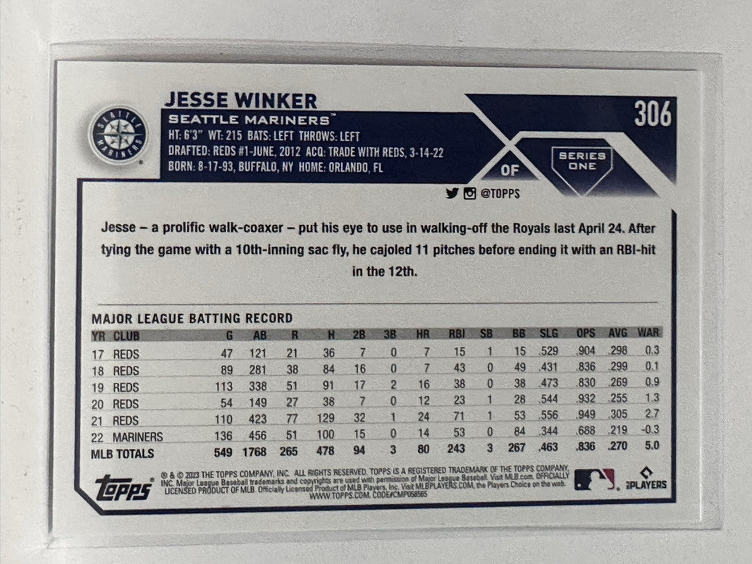 #306 Jesse Winker Seattle Mariners 2023 Topps Series One Baseball Card