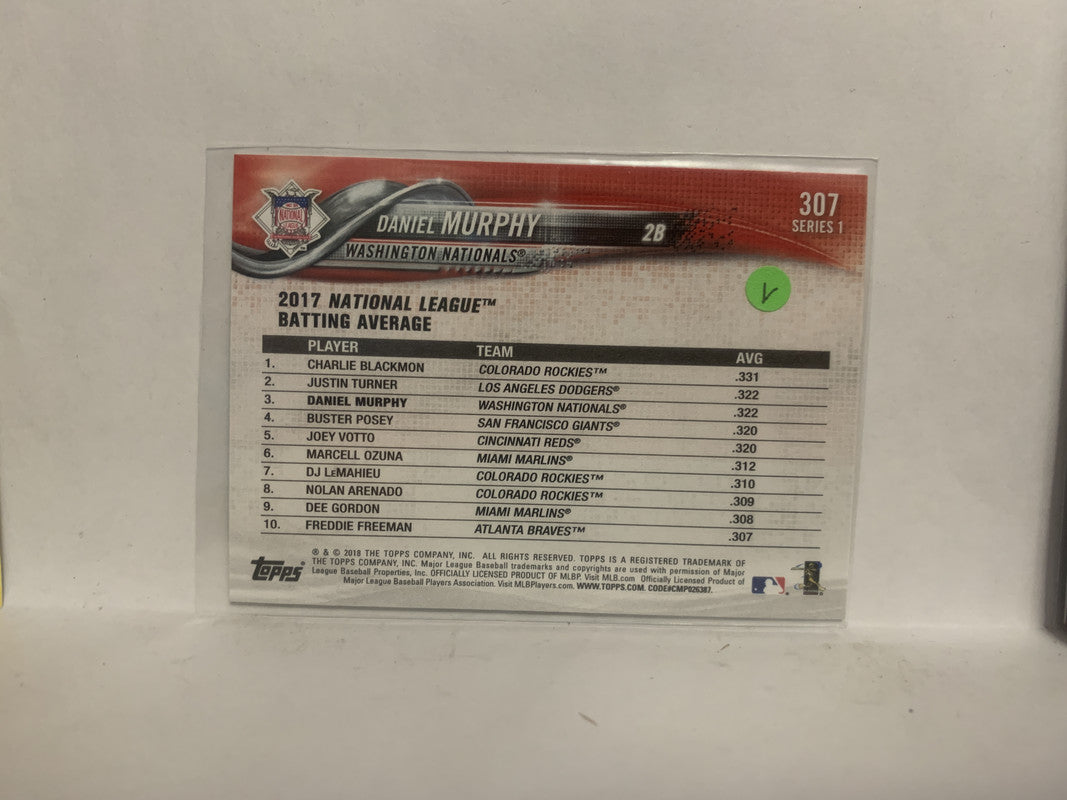 #307 Daniel Murphy League Leaders Washington Nationals 2018 Topps Series 1 Baseball Card NV