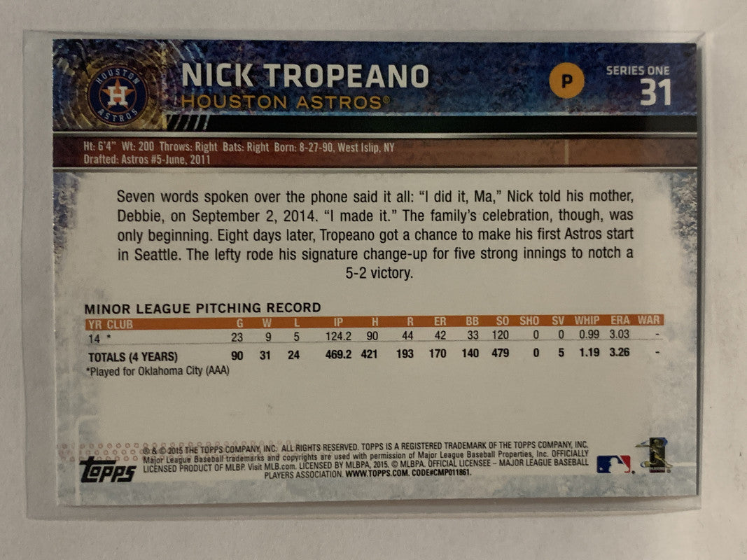 #31 Nick Tropeano Rookie Houston Astros 2015 Topps Series One Baseball Card