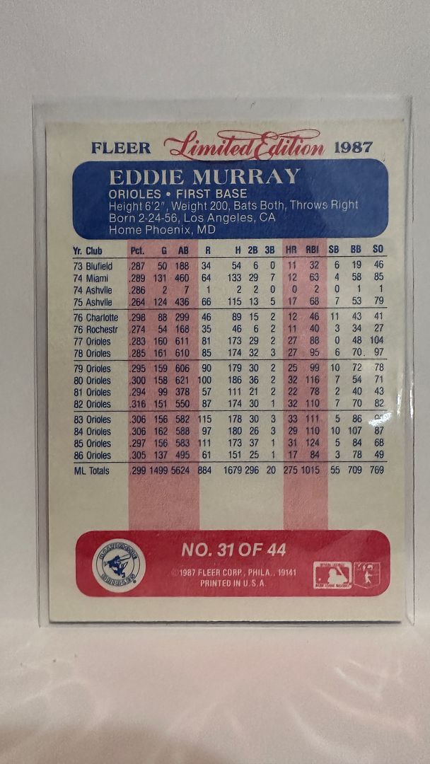 #31 of 44 Eddie Murray Baltimore Orioles 1987 Fleer Limited Edition Baseball Card