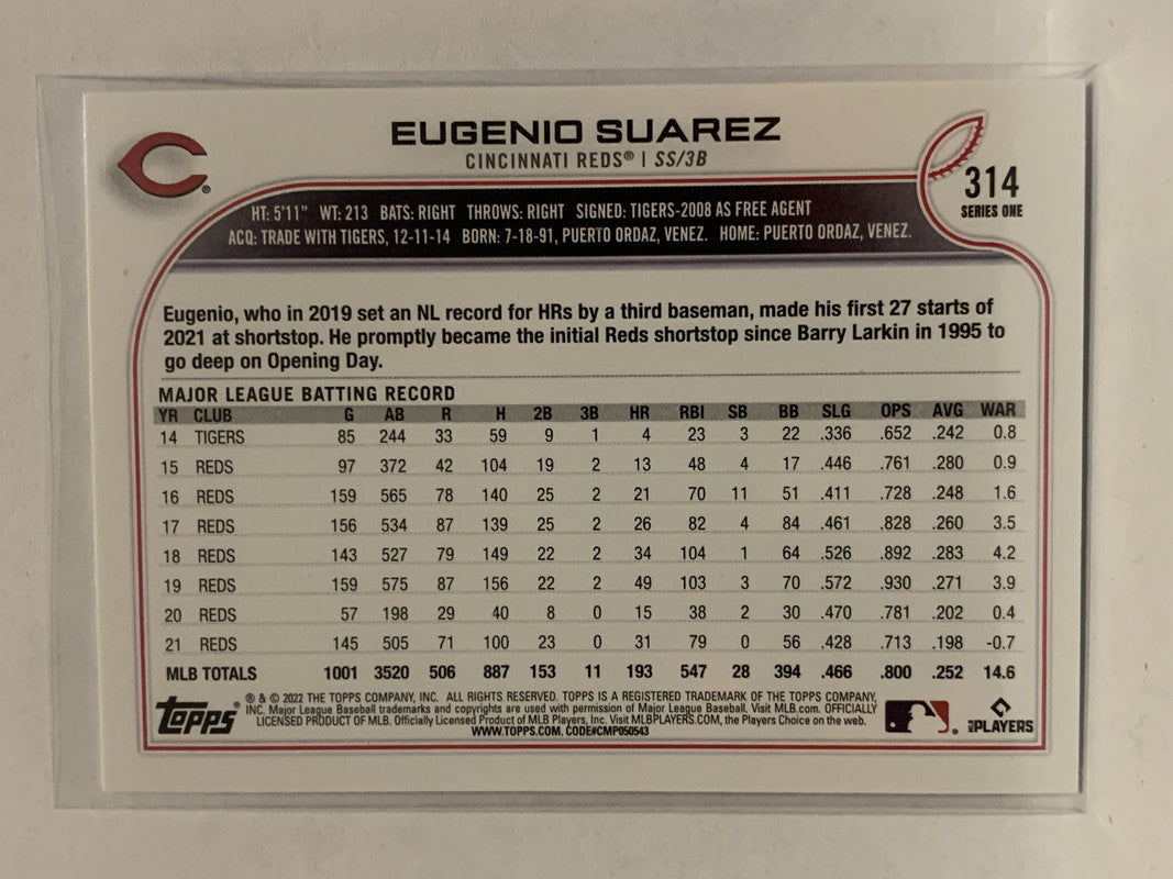 #314 Eugenio Suarez Cincinnati Reds 2022 Topps Series One Baseball Card MLB