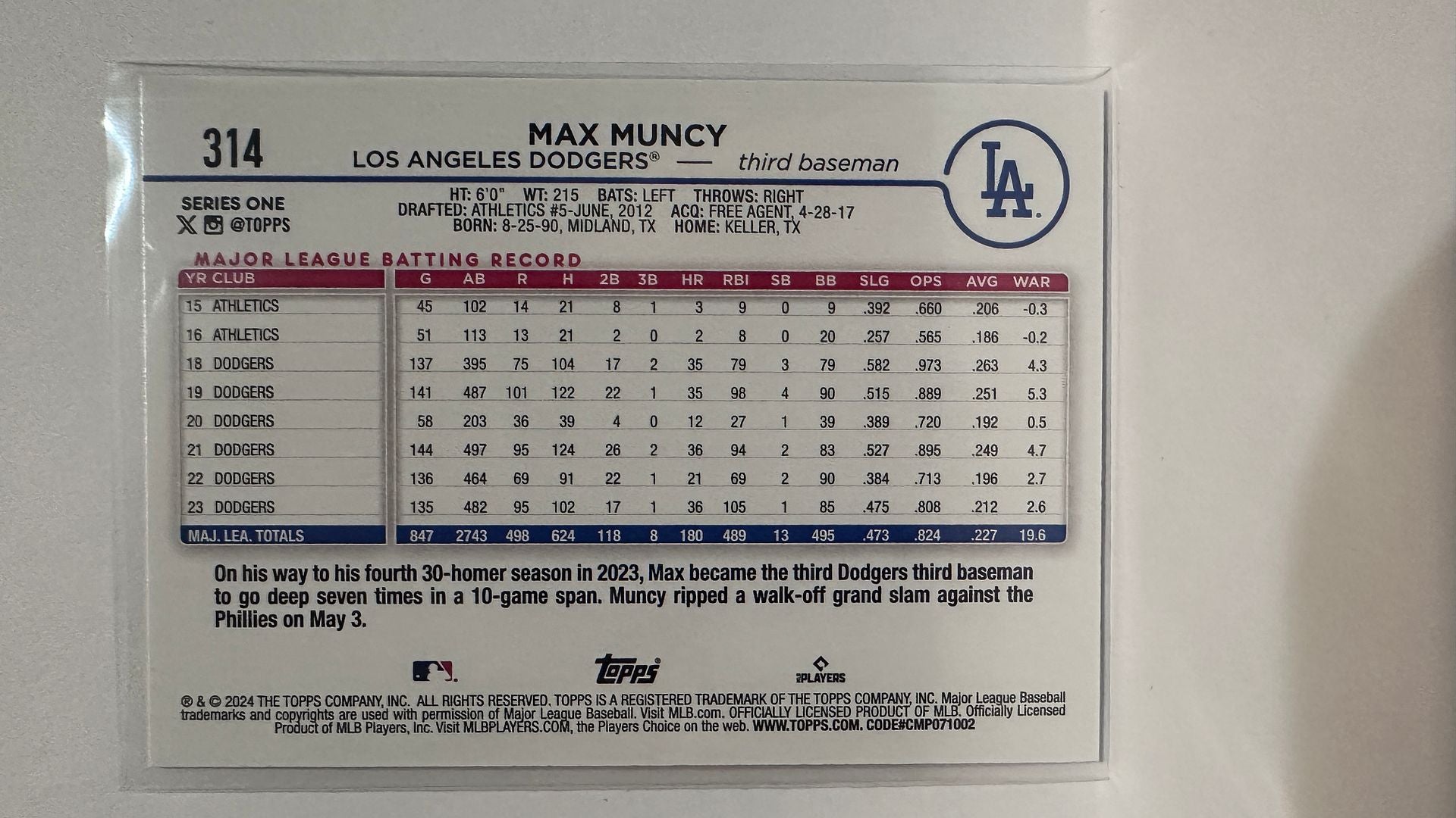 #314 Max Muncy Los Angeles Dodgers 2024 Topps Baseball Card