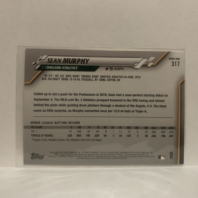 #317 Sean Murphy Oakland Athletics ookie 2020 Topps Series One Baseball Card JC