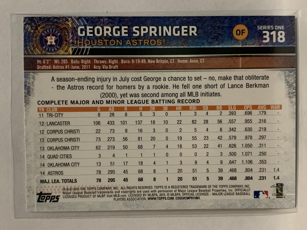 #318 George Springer Future Stars Houston Astros 2015 Topps Series One Baseball Card