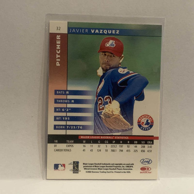 #32 Javier Vazquez Montreal Expos 2002 Donruss Leaf Baseball Card HU