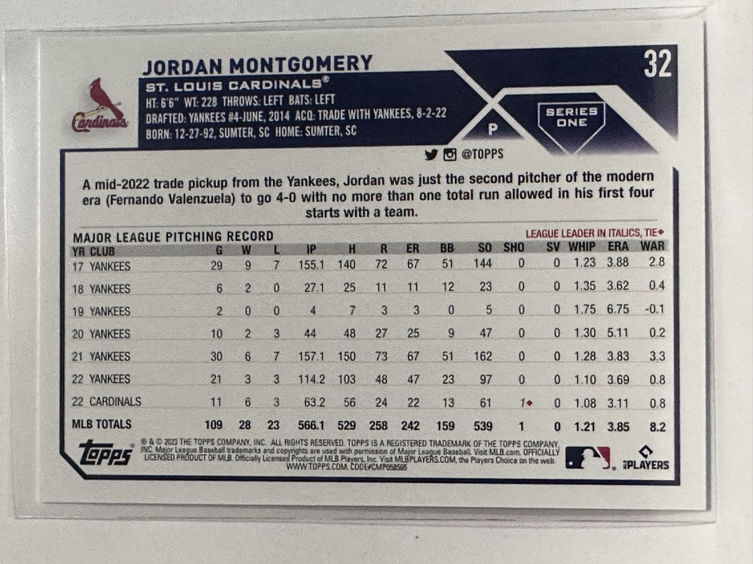 #32 Jordan Montgomery St Luois Cardinals 2023 Topps Series One Baseball Card