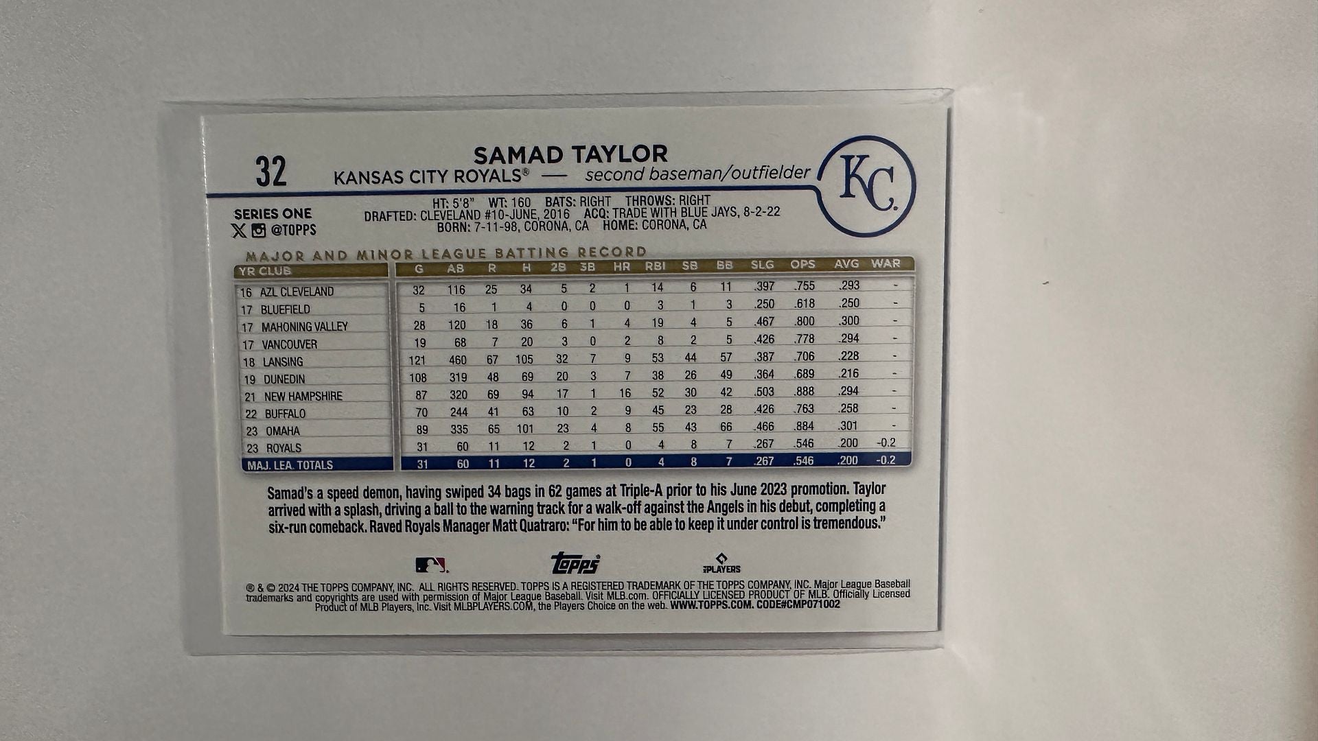 #32 Samad Taylor Rookie Kansas City Royals 2024 Topps Baseball Card