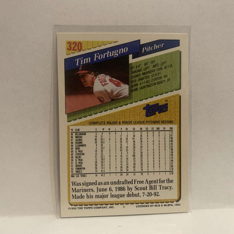 #320 Tim Fortugno Los Angeles Angels 1993 Topps Baseball Card HF