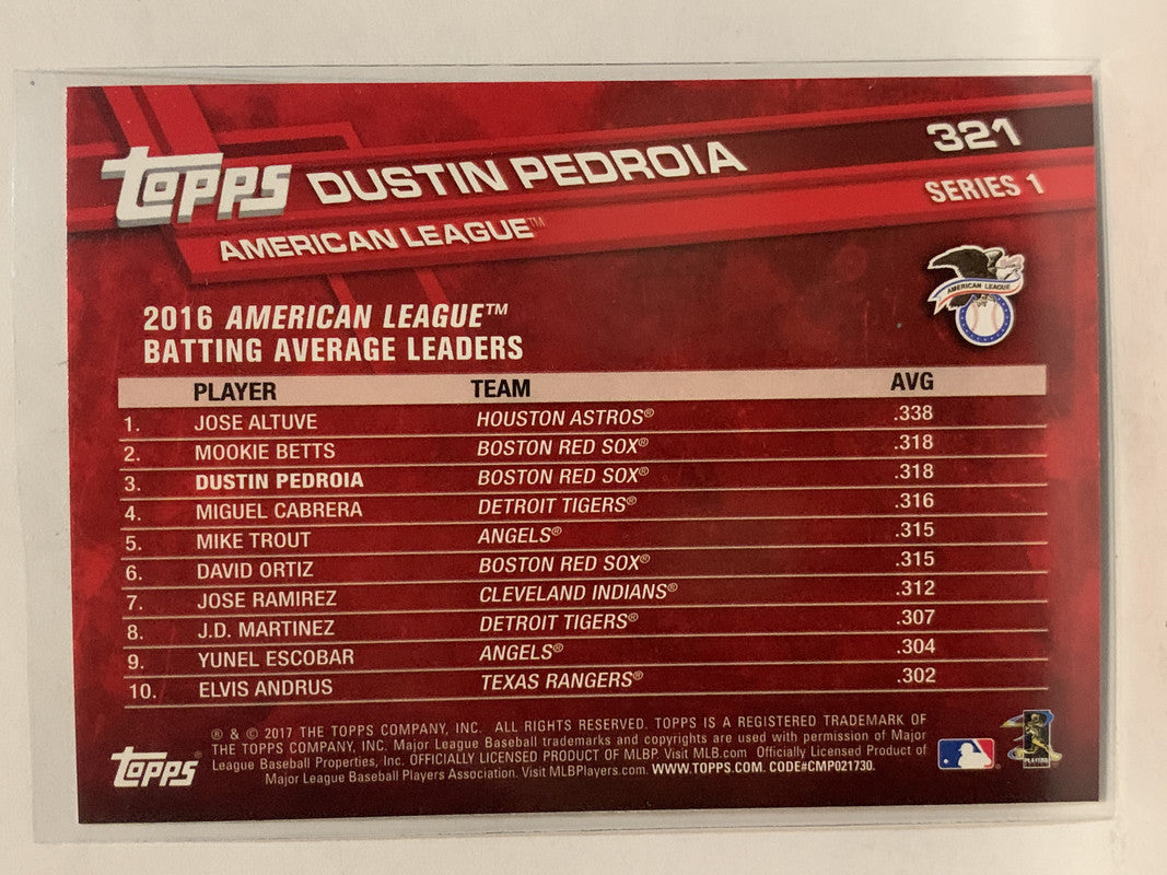 #321 Dustin Pedroia League Leaders Boston Red Sox 2017 Topps Series One Baseball Card