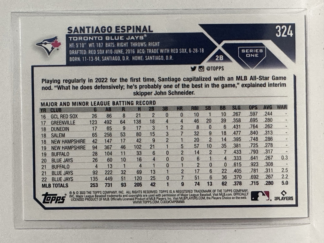 #324 Santiago Espinal Rainbow Toronto Blue Jays 2023 Topps Series One Baseball Card