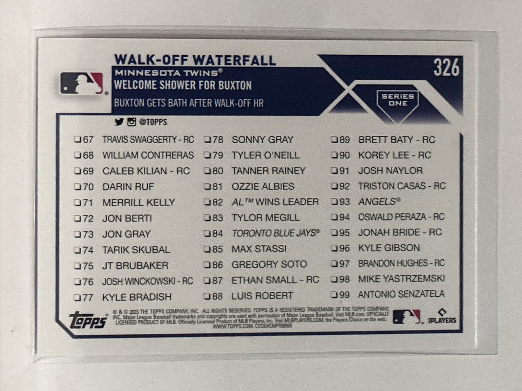 #326 Walk-Off Waterfall Minnesota Twins 2023 Topps Series One Baseball Card