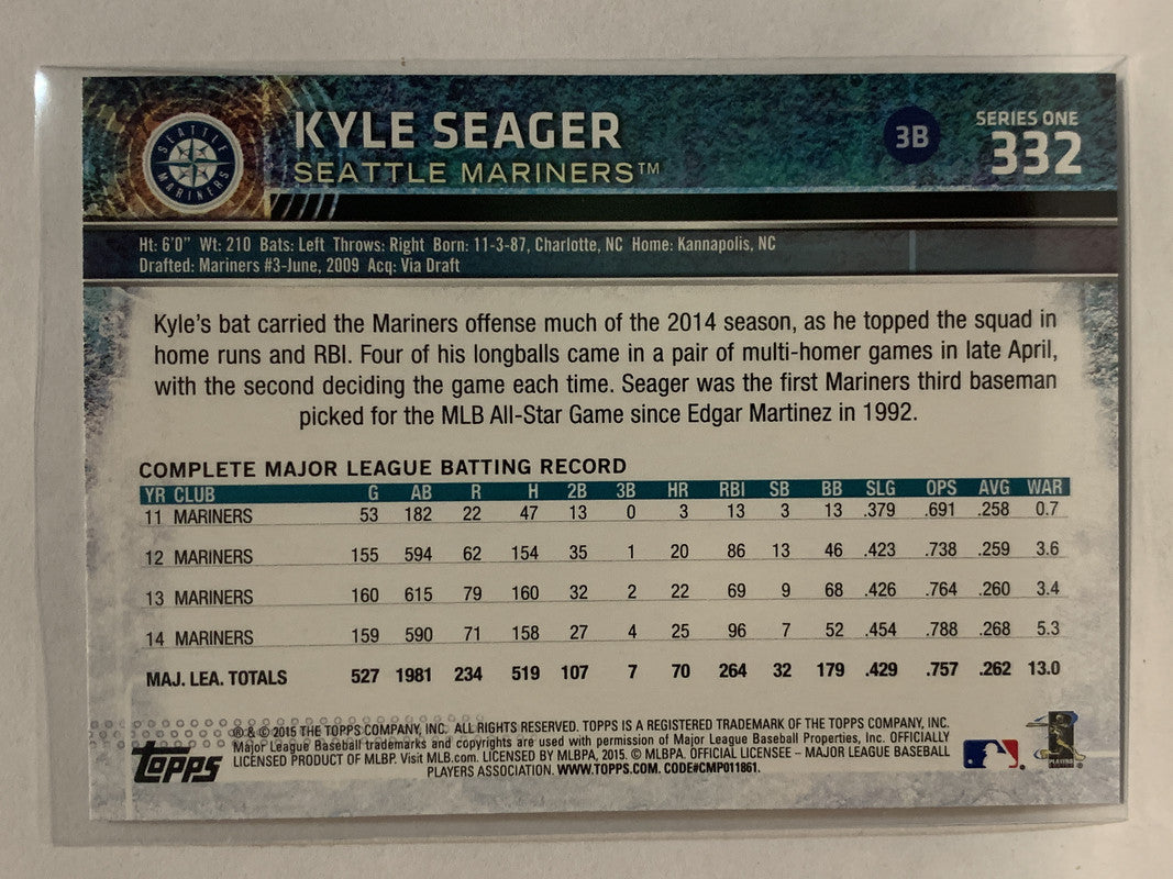 #332 Kyle Seager Seattle Mariners 2015 Topps Series One Baseball Card