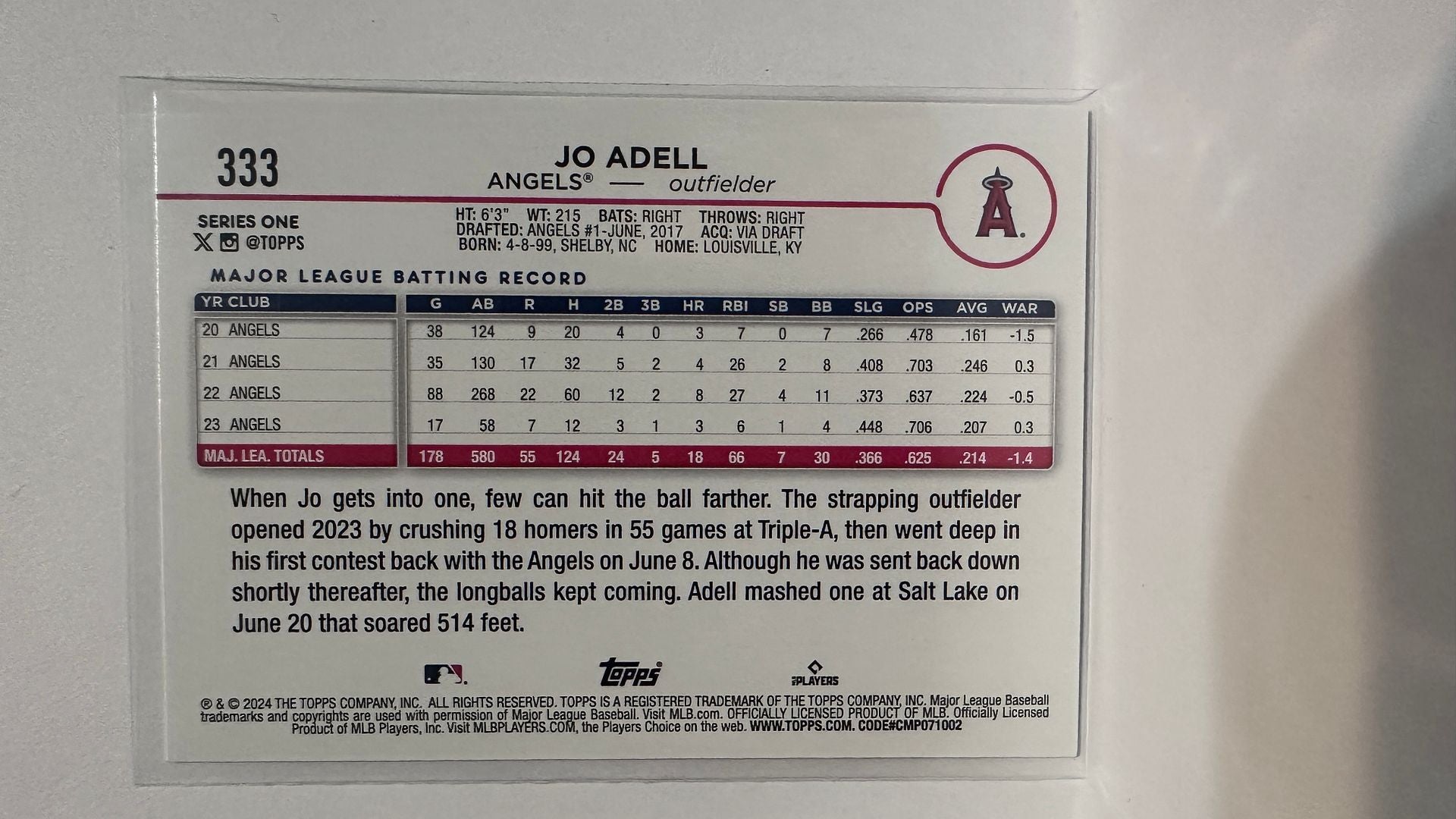 #333 Jo Adell Los Angeles Angels 2024 Topps Baseball Card