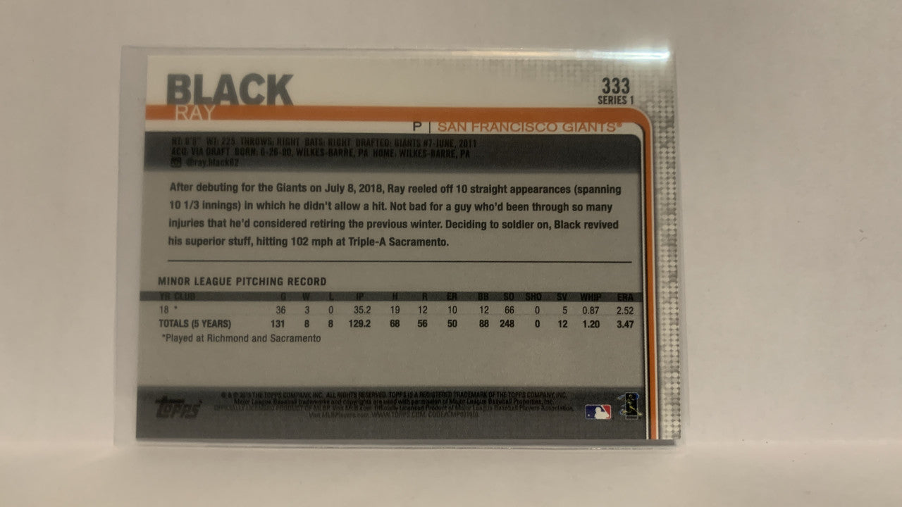 #333 Ray Black Rookie San Francisco Giants 2019 Topps Series 1 Baseball Card