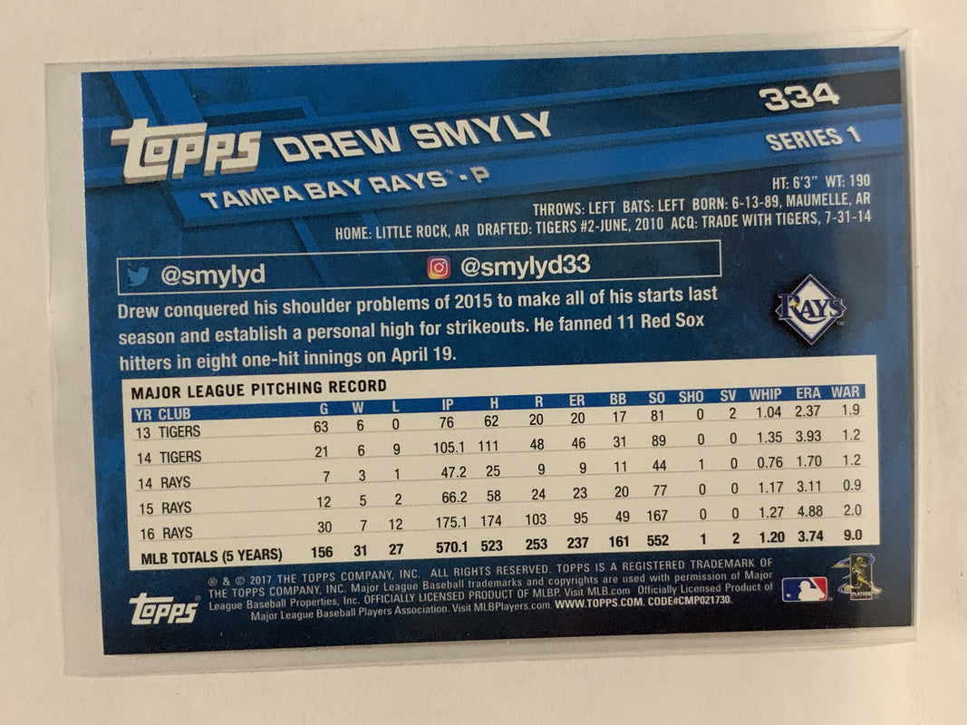 #334 Drew Smyly Tampa Bay Rays 2017 Topps Series One Baseball Card