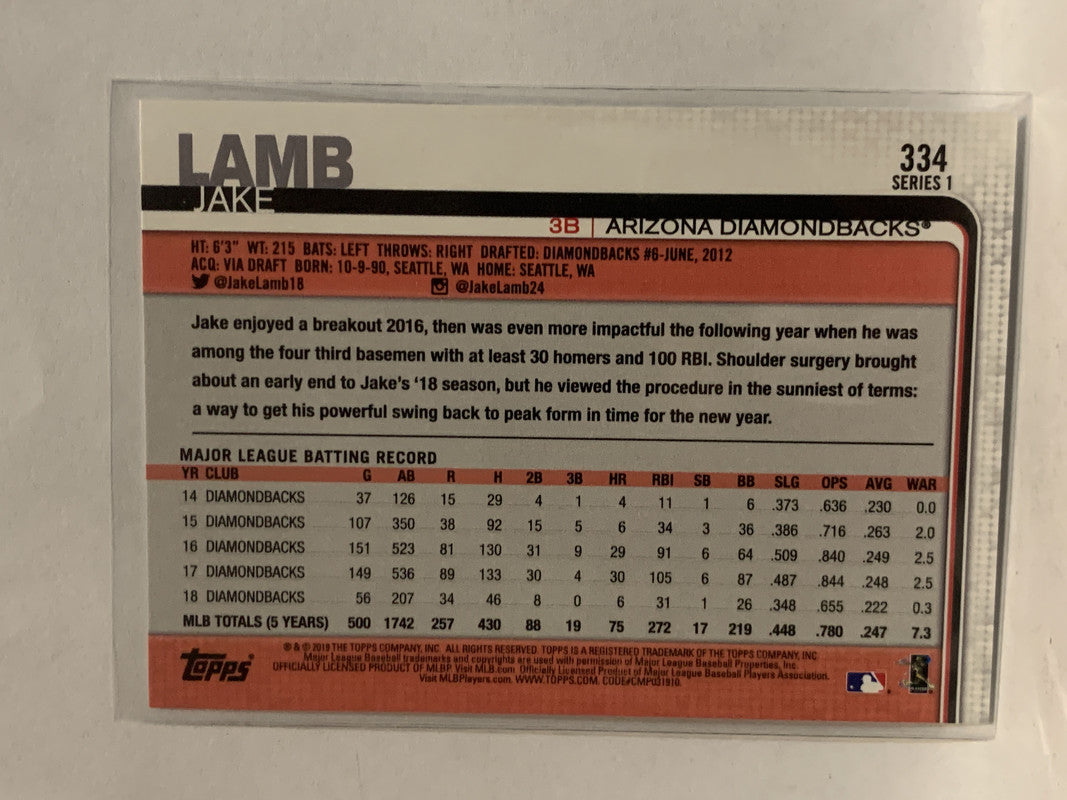 #334 Jake Lamb Arizona Diamondbacks 2019 Topps Series One Baseball Card