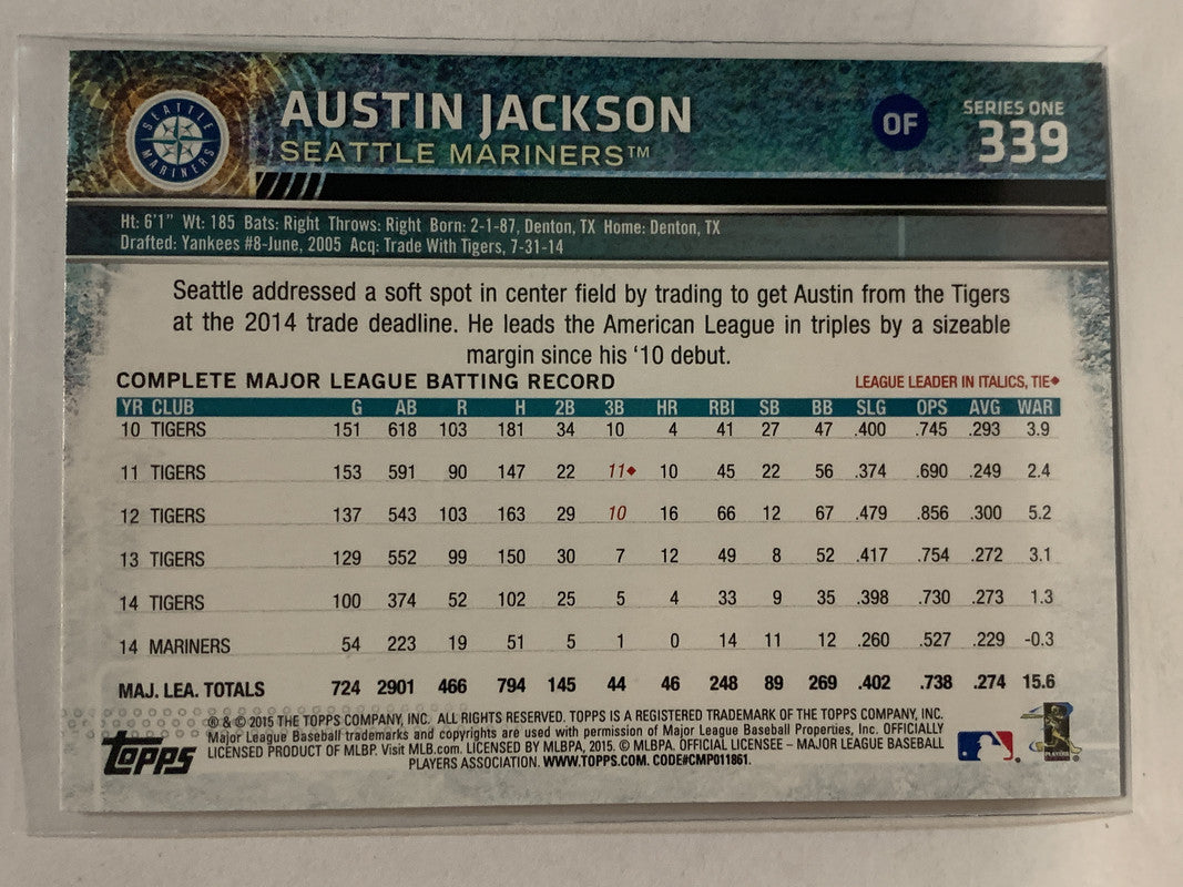 #339 Austin Jackson Seattle Mariners 2015 Topps Series One Baseball Card