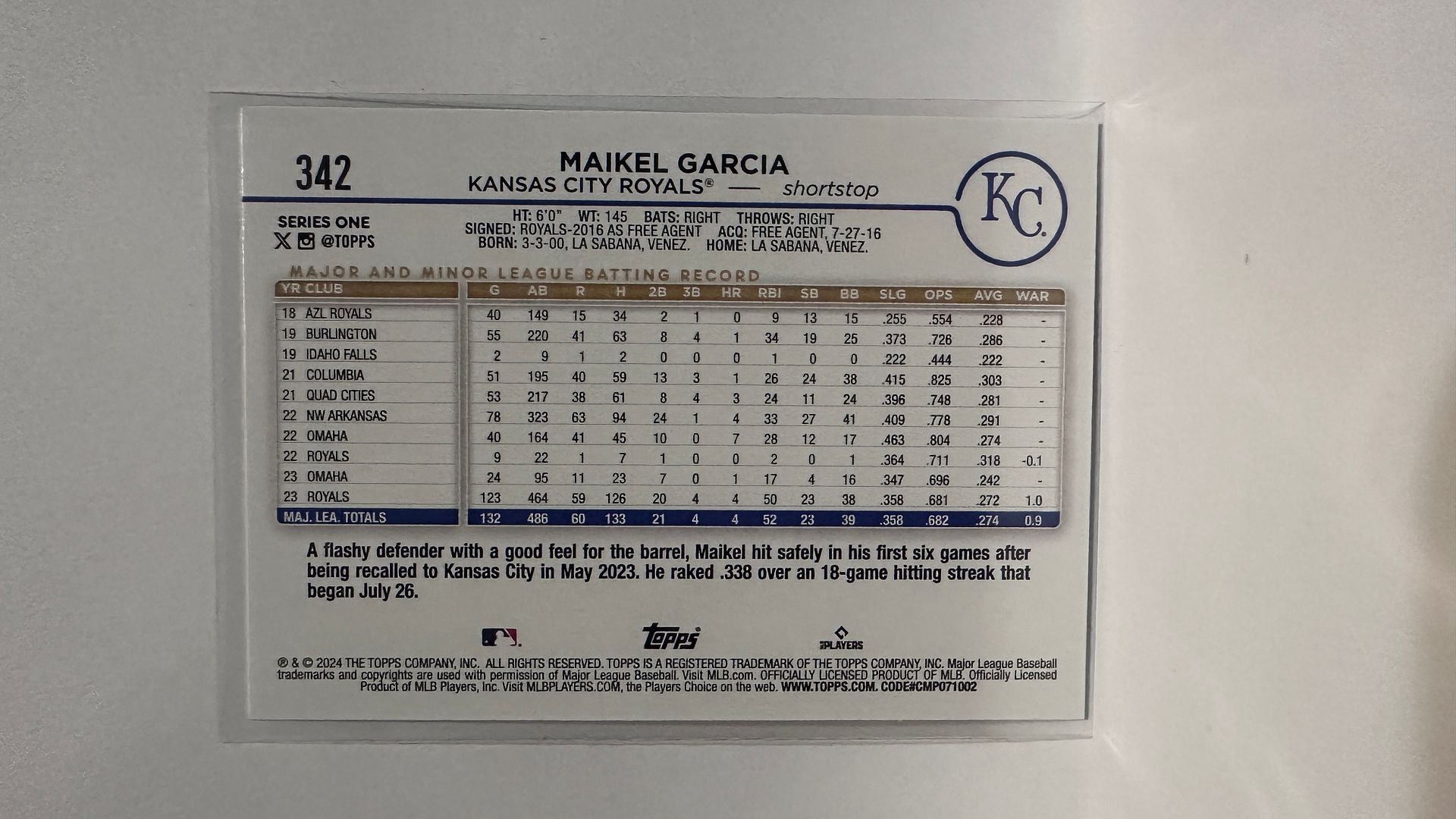 #342 Maikel Garcia Kansas City Royals 2024 Topps Baseball Card
