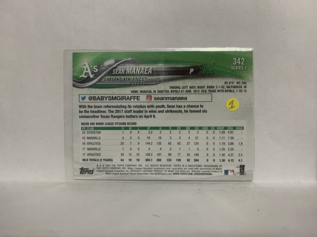 #342 Sean Manaea Oakland Athletics 2018 Topps Series 1 Baseball Card NT