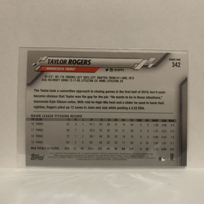 #342 Taylor Rogers Minnasota Twins 2020 Topps Series One Baseball Card JC