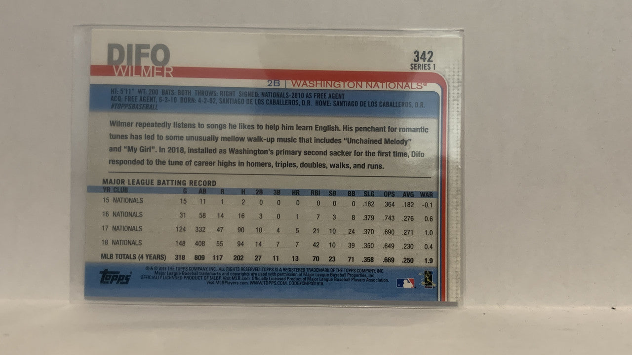 #342 Wilmer Difo Washington Nationals 2019 Topps Series 1 Baseball Card