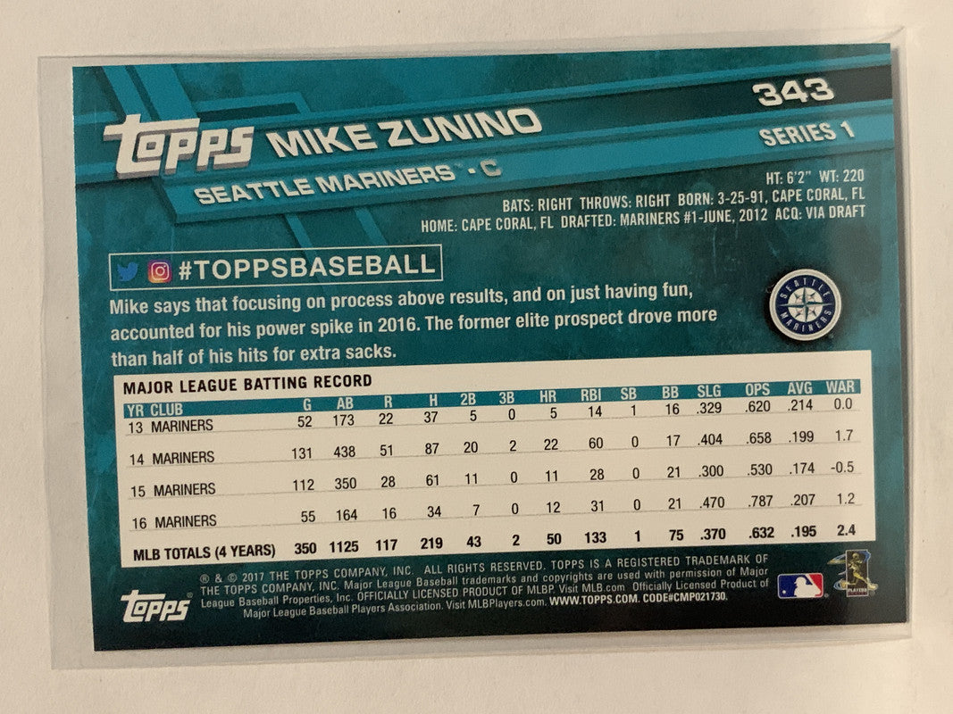 #343 Mike Zunino Seattle Mariners 2017 Topps Series One Baseball Card