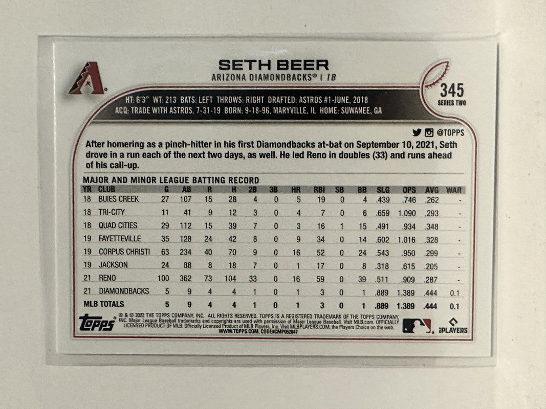 #345 Seth Beer Rookie Arizona Diamondbacks 2022 Topps Series Two Baseball Card
