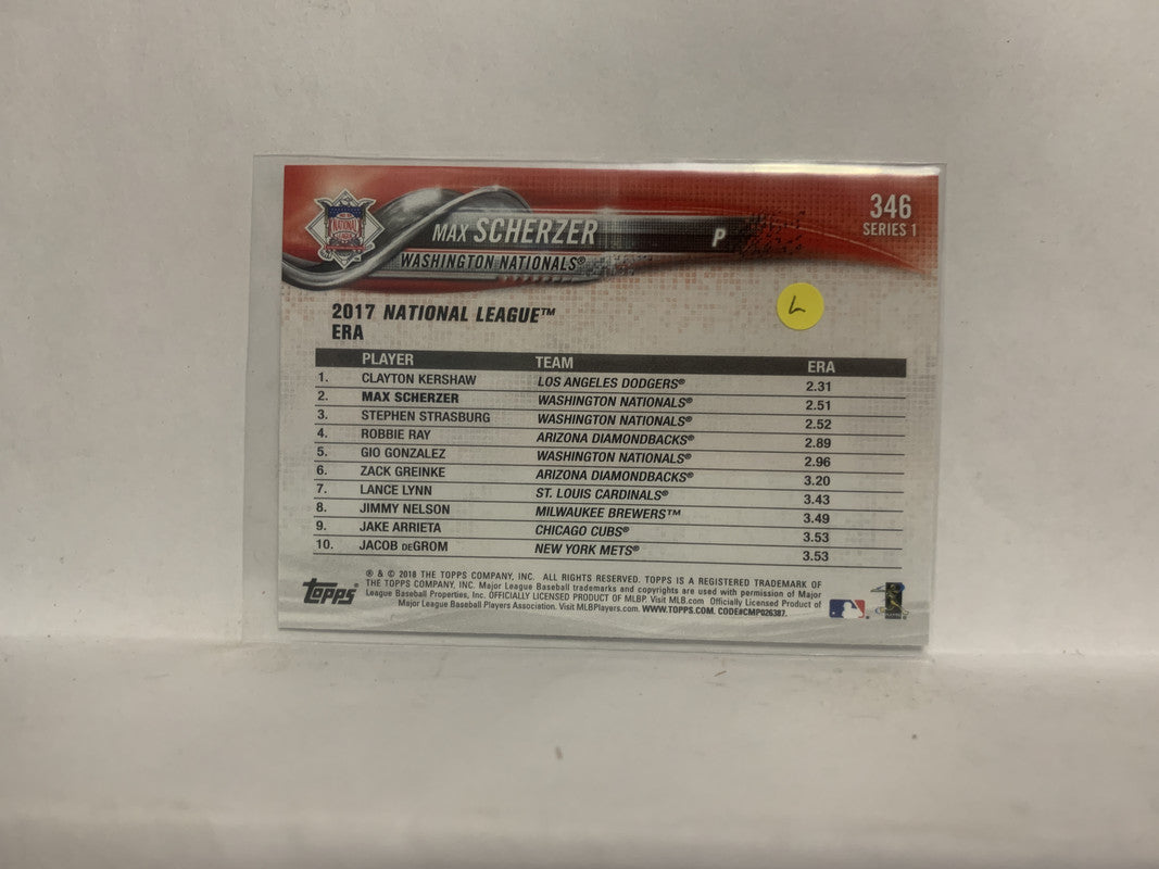 #346 Max Scherzer League Leaders Washington Nationals 2018 Topps Series 1 Baseball Card NT