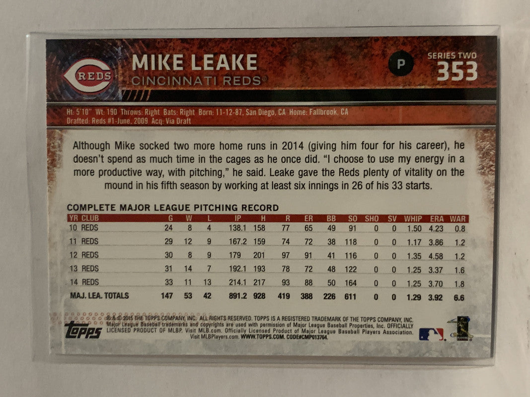 #353 Mike Leake Cincinnati Reds 2015 Topps Series two Baseball Card