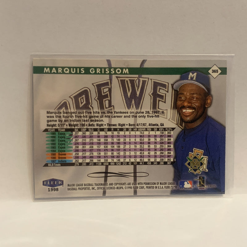 #365 Marquis Grissom Milwaukee Brewers 1998 Fleer Tradition Baseball Card HN