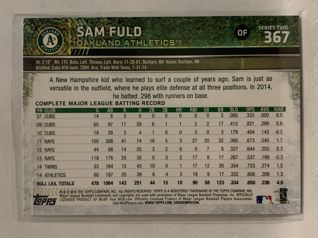 #367 Sam Fuld Oakland Athletics 2015 Topps Series two Baseball Card