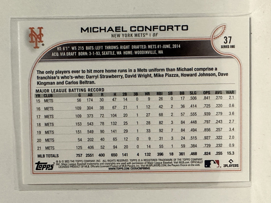 #37 Michael Conforto New York Mets 2022 Topps Series One Baseball Card