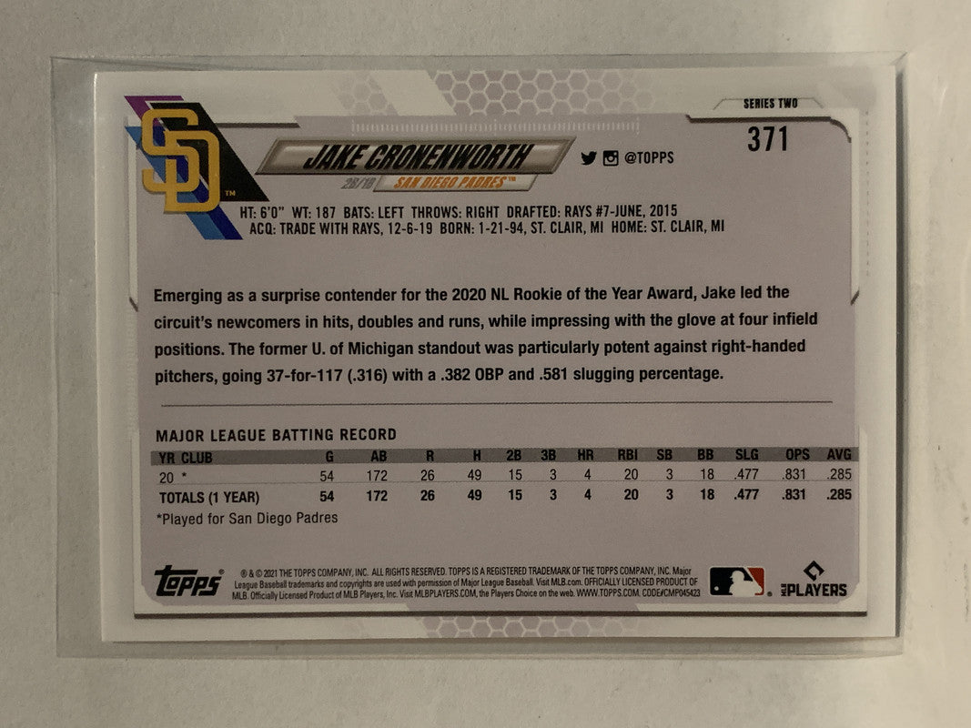 #371 Jake Cronenworth Rookie All Star San Diego Padres 2021 Topps Series 2 Baseball Card