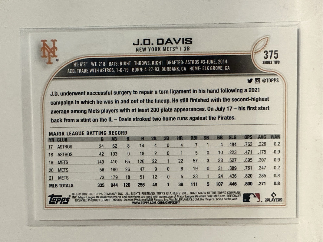 #375 J.D. Davis New York Mets 2022 Topps Series Two Baseball Card