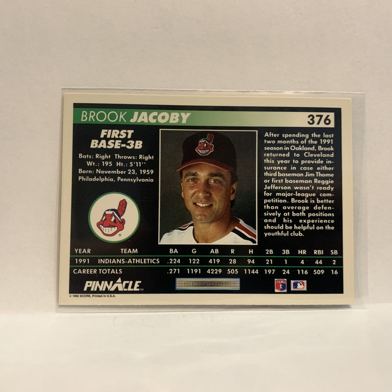 #376 Brook Jacoby Cleveland Indians 1992 Pinnacle Baseball Card IJ