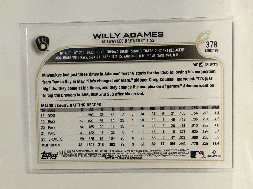 #378 Willy Adames Milwaukee Brewers 2022 Topps Series Two Baseball Card