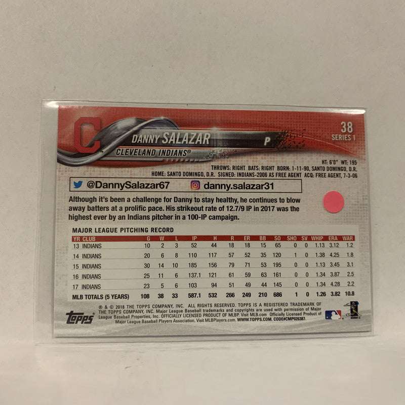 #38 Danny Salazar Cleveland Indians Series 1 2018 Topps Baseball Card A1W